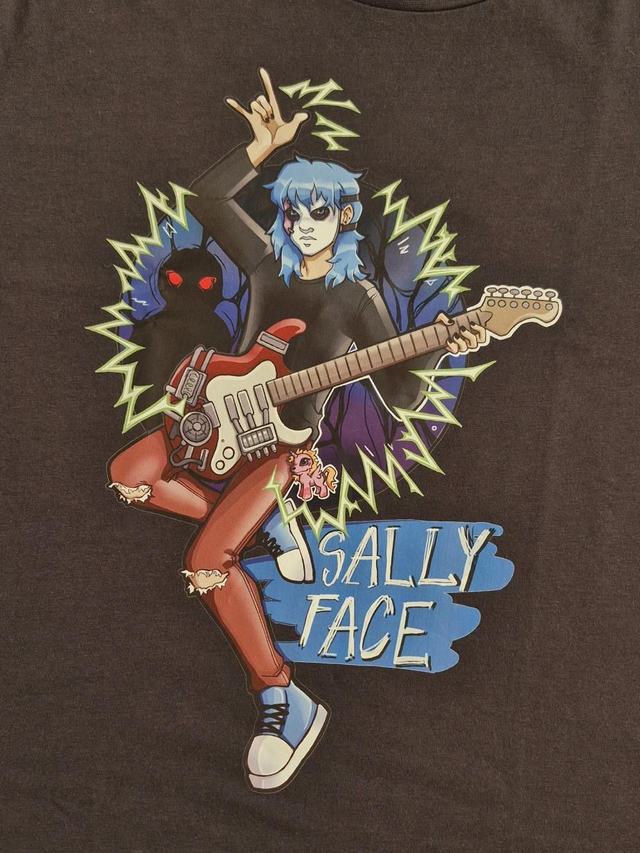 Tričko s potiskem inspirované jednou z mých oblíbených psychologických horovek Sally Face. Tričko je dostupné v různých barevných variacích dle domluvy.